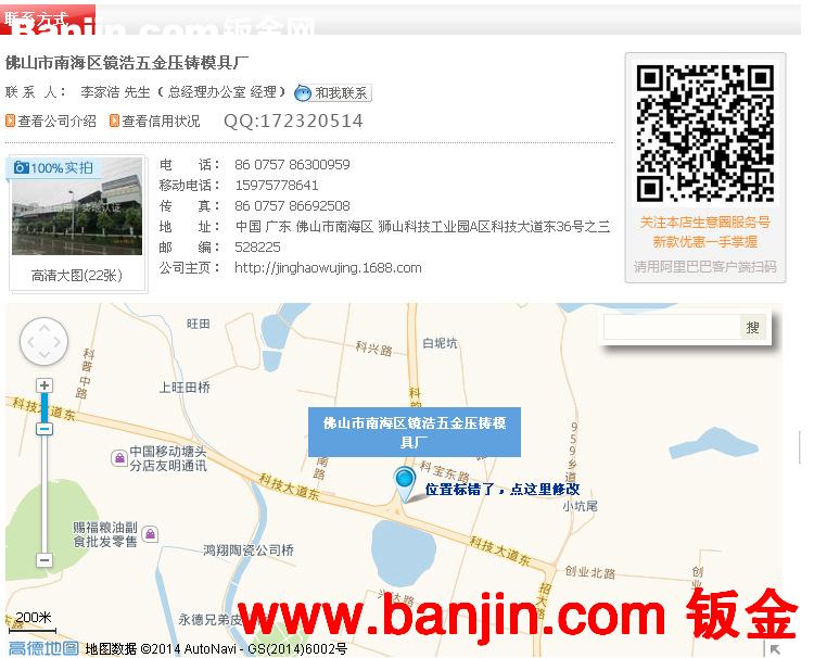 佛山市南海区狮山科技工业园A科技大道东36号 佛山市南海区镜浩五金压铸模具厂 QQ:172320514